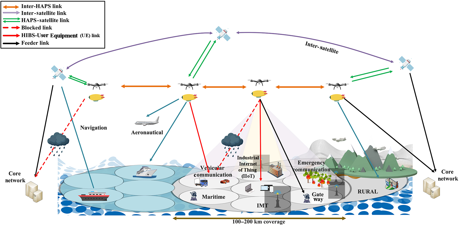 Fig. 1 High altitude platform dominant system architecture and deployment scenarios.