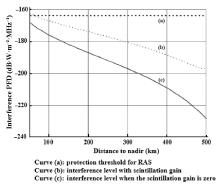 Fig. 7 Interference PFD vs. distance to nadir.